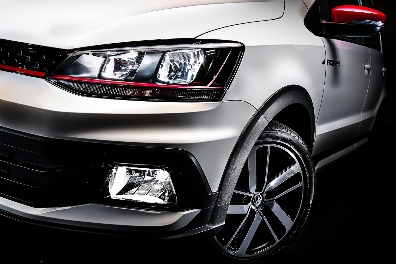 O estilo ousado do Fox Pepper é evidenciado pelo para-choque dianteiro, que – assim como no CrossFox – conta com faróis auxiliares com aros pintados em preto brilhante – têm formato retangular e tripla função, funcionando como faróis de neblina, faróis de longo alcance.